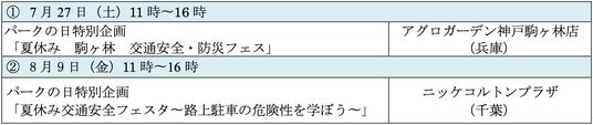 [1]路上駐車ゼロに向けた講習の実施タイムズ24が商業施設で行うこども向けイベント内で「路上駐車が引き起こす問題」について学ぶ講習を実施します。イベントの詳細はパークの日特設サイトや公式SNSでご確認いただけます。