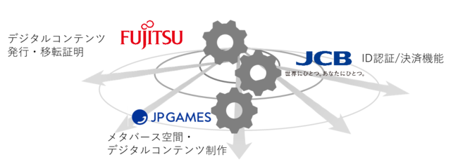 株式会社ジェーシービー(注1、以下 JCB)、JP GAMES株式会社(注2、以下 JP GAMES)と富士通株式会社(注3、以下 富士通)は、メタバースやゲーム世界におけるデジタルデータの安全な流通・販売に向けた共同プロジェクトを2022年8月23日から1年間実施します。