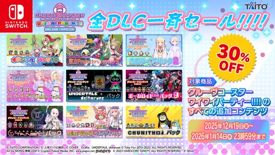 『グルーヴコースター フューチャーパフォーマーズ』の本体ソフトが今なら40%OFFで購入できるホリデーセール開催中!無料体験版でお試しいただけます。体験版のセーブデータは、製品版に引き継ぐことができます。初めて『グルーヴコースター』を遊ぶ方も、シリーズを遊び尽くしてきた方もスペシャルプライスをお見逃しなく!