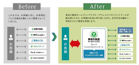 東急不動産ホールディングスは各不動産ポジションで強いグループ会社を抱える幅広い事業ウィングを強みとしています。これまではグループ会社で各々お客様の資産サポートをしておりましたが、グループ内で不動産流通事業を担う東急リバブル内の専門組織「ウェルスアドバイザリー本部」による資産コンサルティングを中核プラットフォームとし、グループの提供サービスをご利用いただいた資産家、投資家、地主、会社オーナー、会社役員、医師の方などの世帯(以下、「お客様」) を中心に、未来に続くパートナーとして、グループ一丸でサービスを提供してまいります。