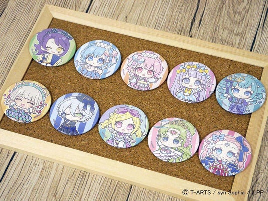 定番グッズでもある缶バッジでは、キャラクターたちの上半身をクローズアップ!