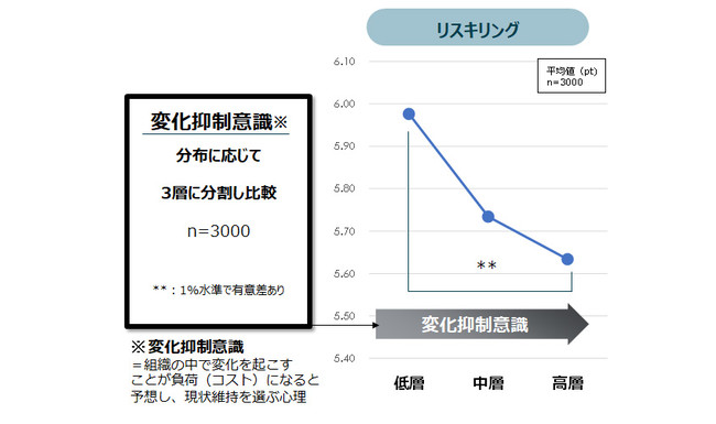 業務に変化を起こすことをコストとして捉えてしまう「変化抑制意識」も、アンラーニングやリスキリングの障害になっていた。新しい変化を避けるこうした意識を発生させないための目標管理や目標共有、ないしは変化へのコストを超える見返り(報酬)を与える施策が必要になる。