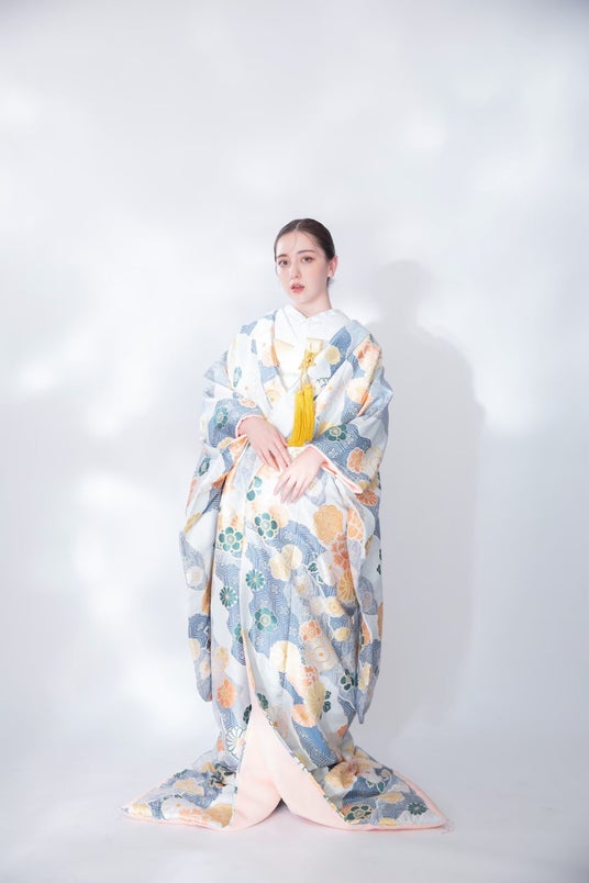 涼しげな水色の打ち掛け。お嫁様の透明感が際立つ1着。