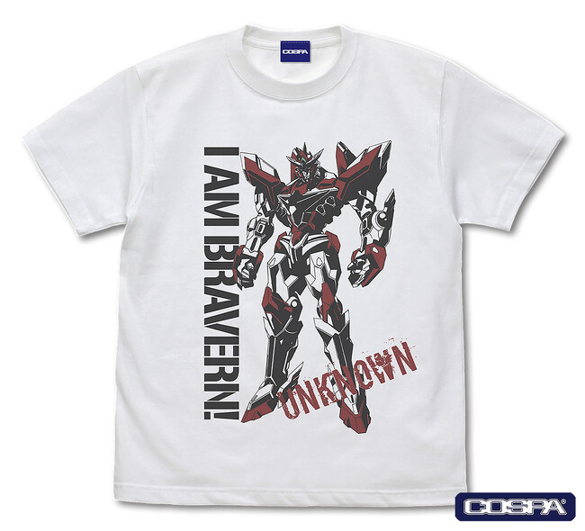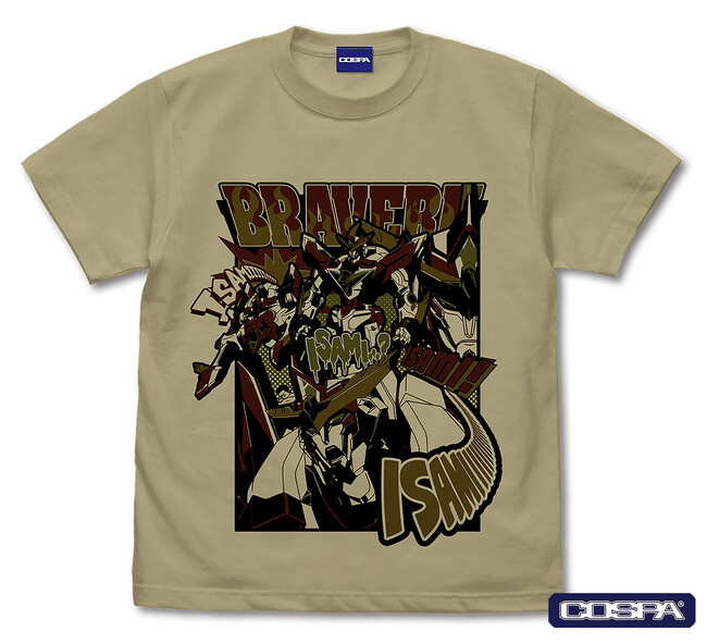 コスパより、大張正己デザインによる人型ロボット「ブレイバーン」の姿をデザインしたブレイバーンTシャツに、自衛隊所属パイロット「イサミ・アオ」を呼ぶブレイバーンの「イサミィーーッ!」の声が今にも聞こえてきそうなイサミィーーッ!Tシャツの2種が登場。
