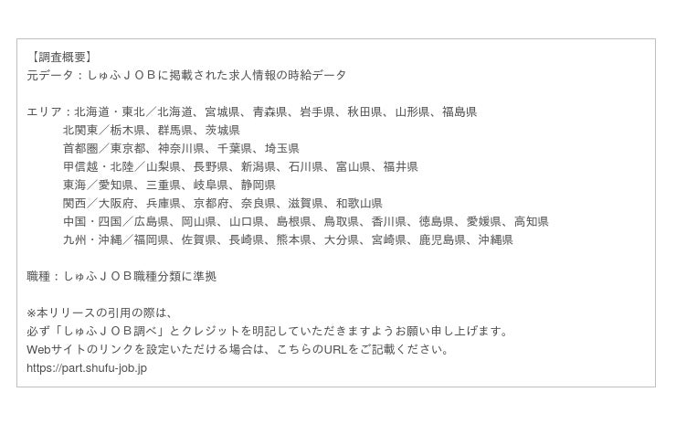 ビースタイルグループで主婦に特化した求人サイト『しゅふJOB』を運営する株式会社ビースタイル メディア(本社:東京都新宿区、代表取締役社長:小牟田斉美)は、掲載された求人情報の時給データから算出した『平均時給』の2021年10月分を集計しました。