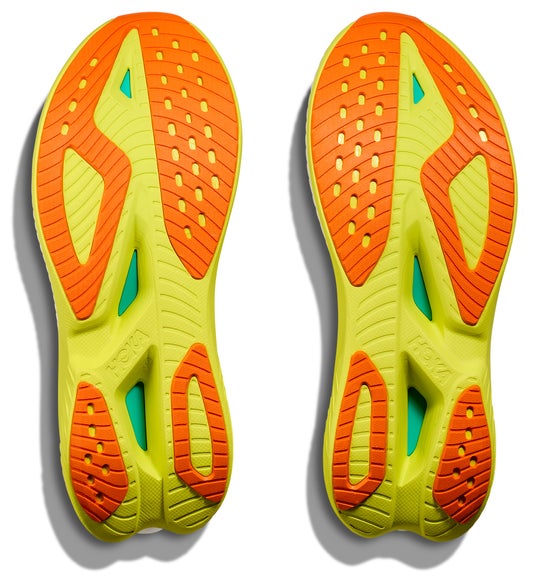 ウィング形状のPebax(R)プレートは、拡張することでサポート力、コントロール力、推進力をアップし、二層構造のミッドソール上部のPEBAフォームと下部のスーパークリティカルフォーム(SCF) EVAの間に配置しています。SCF EVAミッドソールは一部を切り抜いて軽量化し、粘着性のあるラバーゾーナルアウトソールは、スタートからフィニッシュまでトラクションを維持するのに役立ちます。アッパーは再設計され、軽量化と通気性が向上。新しい軽量ウーヴンテキスタイルに、マチ付きシュータンとレースから着想を得た履き口を組み合わせ、サポート力の高いフィット感を生み出しています。視認性に優れた再帰反射素材も搭載し、昼夜を問わず走ることができます。