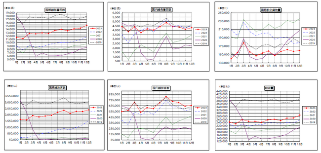 ます。発着回数は、12,350回(前年同月比147%、2019年同月比79%)となりました。