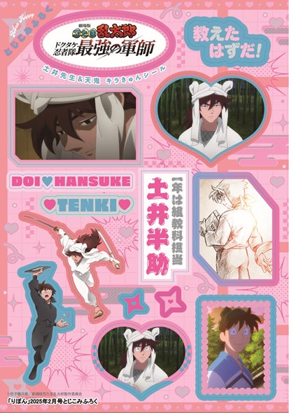 「劇場版 忍たま乱太郎 ドクタケ忍者隊最強の軍師」の公開を記念し、「土井先生&天鬼 キラきゅんシール」をとじ込み付録に。ハート柄のホログラム加工が施された「りぼん」でしか手に入らないデザインです。また、劇場版のキーキャラクター・土井先生と天鬼にフォーカスした特集記事『起立!礼!ちゅーもく!土井先生が最強すぎる(ハート)』を掲載。土井先生と天鬼の声を担当する声優の関俊彦さんにインタビューしています。