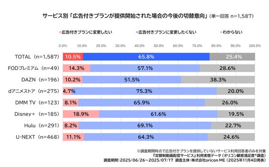 「広告付きプランに変更したくない」が6割以上 各サービスの利用者の反応に差も