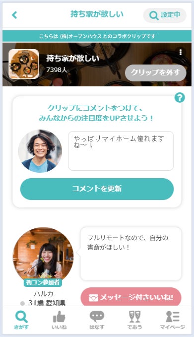 クリップ機能(趣味や価値観を表現する機能)に「持ち家が欲しい」を追加