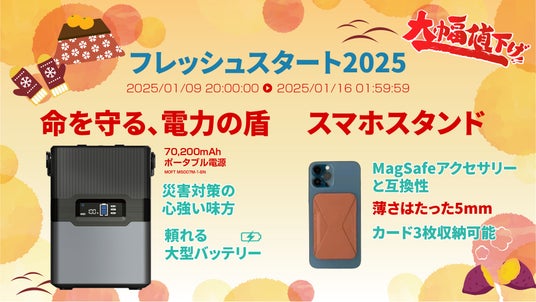 楽天市場「Show !t」は、本日1月9日(木)20:00~1月16日(水)01:59まで、楽天お買い物マラソンに参加いたします。災害時やレジャーに便利なポータブル電源や、カード3枚収納可能なMOFTスマホスタンドを特別価格でご提供!この機会をお見逃しなく!