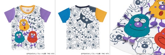青色のかびるんるんは手足が紐で表現されており、つい触りたくなるような、着ているだけで楽しいデザインです。背面にはばいきんまんもプリントされています。大人サイズも同時展開しているので、ペアコーディネートも楽しめます。