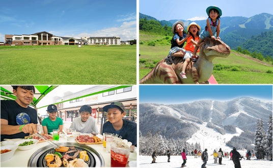 スキージャム勝山は恐竜の街として知られる福井県勝山市に立地し、緑豊かな高原の中でのアクティビティや、手ぶらで楽しめるバーベキューガーデン、福井土産やアウトドアブランドのアパレルが豊富な売店など、1 日中豊かな自然環境の中でお楽しみいただくことができます。