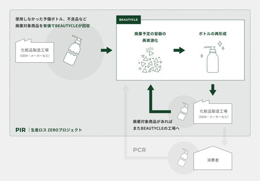 「生産ロスZEROプロジェクト」は、一般的に容器生産過程において多くのロスが発生しているという課題に着目、この課題解決に向けて始動、化粧品やトイレタリー用品を“生産する”際に発生する容器のロス削減に向けてBEAUTYCLEが発足した取り組みです。