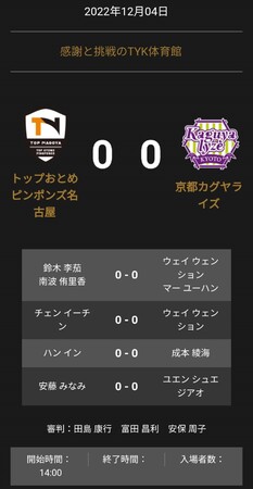 ノジマTリーグ 2022-2023シーズン 公式戦 12月4日(日)開催 感謝と挑戦のTYK体育館(岐阜県)