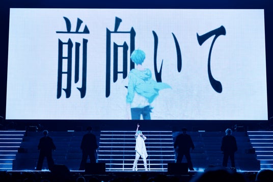 そして。ポーカーテーブルなど小道具を用いてエンターテイナー全開なジェルの「ポーカーダンス」。歌もダンスもカメラアピールもリスナーの心を掴んで離さないさとみの「感情色」。白いオーバーオール姿にも胸キュン、キュート&ポップに突き抜けた莉犬の「ヒロイン(ハート)キラー」。セーラーカラージャケットが似合いすぎ、まるでワンマン公演のようなコール&レスポンスで一体感を高めたるぅとの「わんだーふぁいんだー!」。全身を白い衣装に包み、拳を高く突き上げて意志強く歌声と想いを届けたころんの「敗北ヒーロー」。歌い手として、活動者として道を切り拓いてきたすとぷりメンバーのソロ曲に、どうしても胸が熱くなる。すとぷりはいつだって、STPR Family、リスナーが歩いていく上での道しるべなのだ。