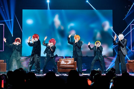 すとぷりのジェル、騎士Xのばぁう、AMPTAKのあっと、めておらのロゼ、すにすてのにしき、だいきりによるユニット・ミミラブは、黒基調衣装でアリーナ客席後方から歩いてセンターステージに向かい、シングルソファーに悠然と腰かけ、すとぷりの「Very」を耳が幸せになるイケボで歌唱。