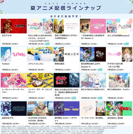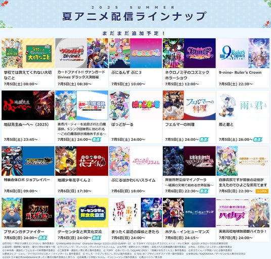 ※詳細は次項目「■2025夏アニメ・配信決定一覧」 及び ラインナップページをご確認ください