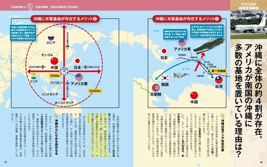 日本各地に点在する米軍の施設、その約4割が沖縄に集中している。冷戦時代、旧ソ連や中国に対抗する最前線基地として機能してきた沖縄は、冷戦終結後、中国の海洋進出に伴い、更にその重要度を増している。太平洋へ向かう中国海軍への牽制、朝鮮半島・台湾有事への備え、ロシア、中国、インドなどへのミサイル戦略上の価値、これら地政学的優位性が米軍にとっての沖縄の存在意義を高めている。◆係争地を一方的に自国領に。中国が作成した「新地図」に周辺諸国は怒り心頭!