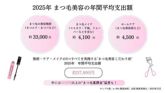 ・まつ毛美容こだわり派の2025年年間平均支出額は約37,800円。中には19万円以上の“まつ毛重課金”猛者も!