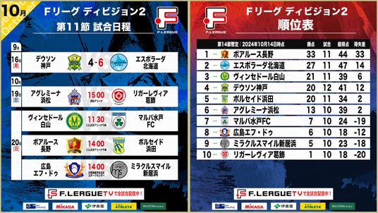 詳細はこちら>>https://www.fleague.jp/score2/teamrank.html