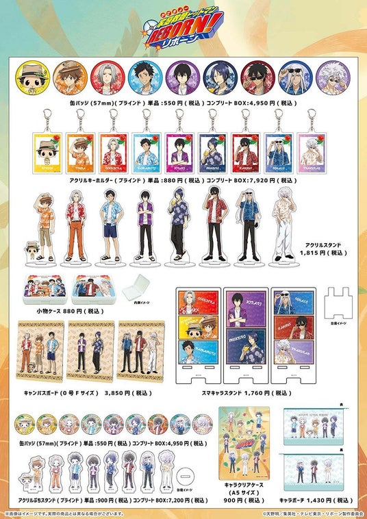 TVアニメ『家庭教師ヒットマンREBORN!』のキャラクターたちが、これからの季節にピッタリなアロハシャツ姿で描かれたイラストを使用した今回の新作グッズ。