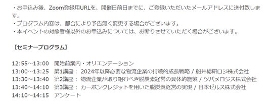 また、物流企業におけるCO2排出削減や、カーボンニュートラル化実現に向けた具体的な取り組み方法など、他社との差別化を図った企業の実例を交えながら講演致します。