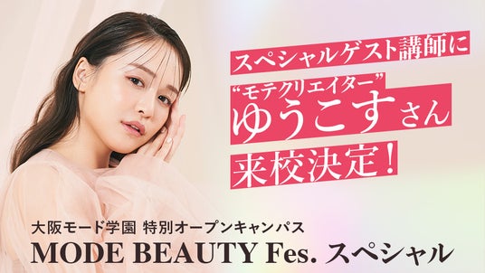 ファッション・デザイン・ビジネスからインテリア、グラフィック、メイク、美容師のプロを育てる専門学校「大阪モード学園」では、メイク・ファッションのトレンドを発信するトップクリエイターゆうこすさんから直接学べる特別オープンキャンパスを開催しました。