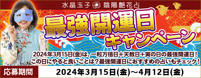 テレビ番組「ダウンタウンDX」出演で話題の占い師「水晶玉子」の月額公式サイトでは、「最強開運日キャンペーン」を公開いたしました。