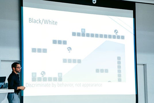 グレース氏はまず、プロのゲーム開発者を目指す学生たちに「何気なく捉えがちな"遊ぶ"とは何かを見つめなおすことで新たな視点が生みだせる」ということを、今まで開発してきた具体的な作品の紹介を交えて教えていただきました。