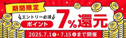 期間中は、通常1%のポイント還元が7%にアップ。次回のお買い物に使えるお得なチャンスです。