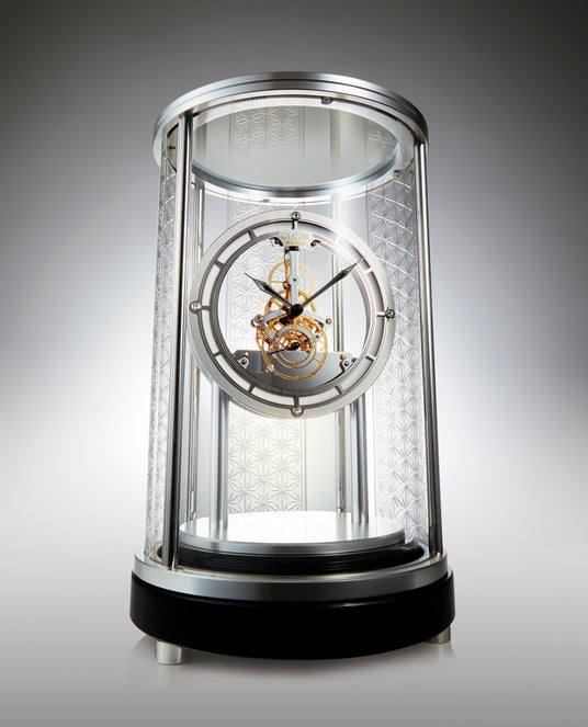 スケルトンムーブメントの美しさを引き立たせる、浮遊感のあるレイアウト。江戸切子と精緻な加工技術が融合した、唯一無二の逸品