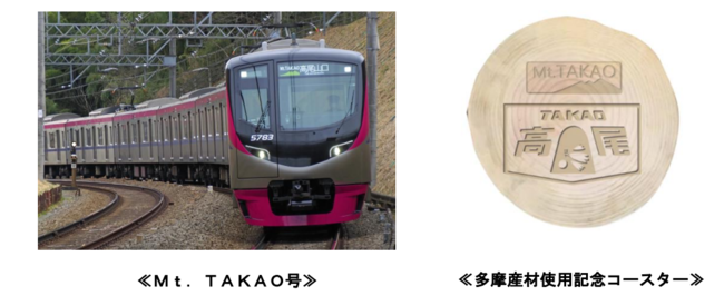 京王電鉄株式会社(本社:東京都多摩市、取締役社長:紅村 康)では、座席指定列車「Mt.TAKAO号」の通年運行化を記念し、3月12日(土)と13日(日)の乗車特典として多摩産材を使用した「輪切りコースター」をプレゼントします。
