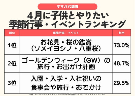 - 調査|赤ちゃんと楽しむ 4月の季節行事&イベントランキング