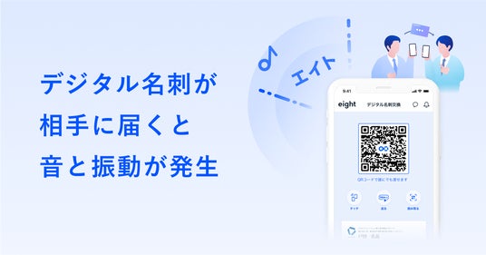 Sansan株式会社が提供する名刺アプリ「Eight」は、QRコードを用いた名刺交換体験を、よりリアルで直感的なものへと進化させる機能アップデートを実施しました。今回のアップデートでは、QRコードを使って名刺を渡した際にスマートフォンから音声と振動が発生し、名刺を「渡した」感覚をその場で実感しやすくなりました。さらに、QRコードを読み取った相手が名刺情報を保存せずに画面を閉じてしまった場合でも、Eightユーザーから相手のメールアドレス宛に名刺情報を後日送信できる機能を実装しました。