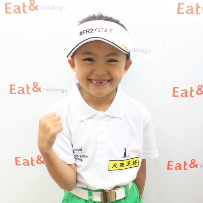 須之内選手は3歳からゴルフを始め、ジュニアゴルファーとして数多くの大会や海外ツアーへ参戦しています。現在、日本ジュニアゴルフツアー(JJGT) 女子10歳以下のランキング1位の実力を有し、2023年以降、海外ジュニアツアーに積極的に参戦予定です。当社は、世界に挑戦していく須之内選手の姿に、海外への出店拡大を目指す大阪王将の未来を重ね、ともに世界へ飛躍するという想いを込めて、年間サポートスポンサーとして応援しております。