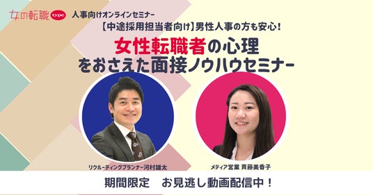 男性人事の方も安心!女性転職者の心理をおさえた面接ノウハウセミナーhttps://info.type.jp/webinar-guide/archive-0057/