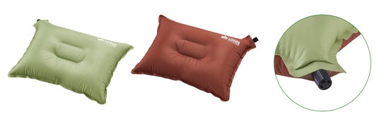 今回ピックアップする「セルフインフレート まくら」は、バルブをひねると自動的に膨らむ「セルフインフレートシステム」を採用した、アウトドア用のクッションまくらです。高さ最大12cmのクッション枕で、注入する空気の量によって高さの調節が可能なため、まくらとしてだけでなく、クッションとしてもご使用いただけます。また、やさしい色味のグリーンとあたたかみのあるブラウンのリバーシブル仕様で、使用シーンや気分に合わせて使い分けが可能です。圧縮すればコンパクトになり、収納バッグが付いているため、持ち運びもラクラクです。簡単に膨らみコンパクト収納なため、キャンプはもちろん旅行にも最適です。