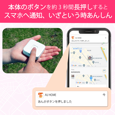 どの携帯キャリアでも利用できる、縦5センチ・横5センチの小さな「あんしんウォッチャー」。現在地や移動経路、よく行く場所のスポット登録など多様な機能を搭載しています。お子さまや、コロナ禍でなかなか会いに行くことができない離れて暮らすご家族、また、大切なバッグや荷物の安全確認など様々なシーンでご活用いただけます。