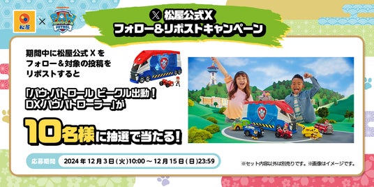キャンペーン期間中に松屋公式Xをフォロー、対象の投稿をリポストするとパウ・パトロール公式グッズが当たる抽選に参加できます。