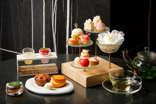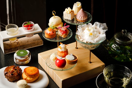 京都水尾の柚子ムースや、奈良県産の高級苺「古都華」を使用したパンナコッタなど、冬に旬を迎える果物で仕立てるスイーツに加え、銀箔シュガーをあしらったバニラシューや粉雪に見立てココナッツを纏わせたバナナケーキなど、雪の降り積もる山麓の銀世界に着想を得た品々がティースタンドを煌びやかに彩ります。オリジナルレシピで焼き上げる自家製スコーンには、ミルク・ダーク・ホワイトの3種のチョコレートを贅沢に練り込んだリッチな味わいのトリプルショコラフレーバーが冬季限定で登場。さらには、ズワイ蟹と伊予柑のキッシュや、林檎のピクルスを添えた京鴨生ハムの手毬寿司など、セイボリーにも季節の味覚をふんだんに使用しました。ジンジャーやシナモンのフレーバーティーなど8種のオリジナルティーセレクションとともに、穏やかな冬のティータイムをご堪能ください。