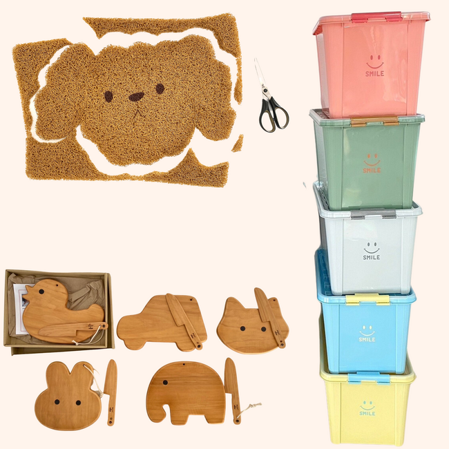 「一緒に整理整頓、親子で料理、親子で作るマット」