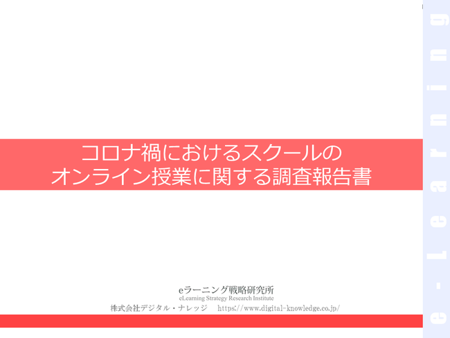 導入実績2000超を誇るeラーニング専門ソリューション企業、株式会社デジタル・ナレッジ(本社:東京都台東区、代表取締役社長:はが弘明)が運営するeラーニング戦略研究所は、関東・中部・近畿地方の資格・語学・IT・クリエイティブスクールの経営者らを対象に、オンライン授業(Web講座)の実施状況に関する調査を実施し、その結果をまとめた報告書を2022年3月1日に公開致しました。