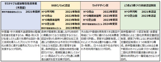 2)その他 当社木質化の取組に於ける各種認証取得等一覧