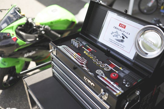 KTC 京都機械工具株式会社とタッグを組み、Ninja Team Green Cup参加者を対象とした工具おためしサービスを会場で実施しています。