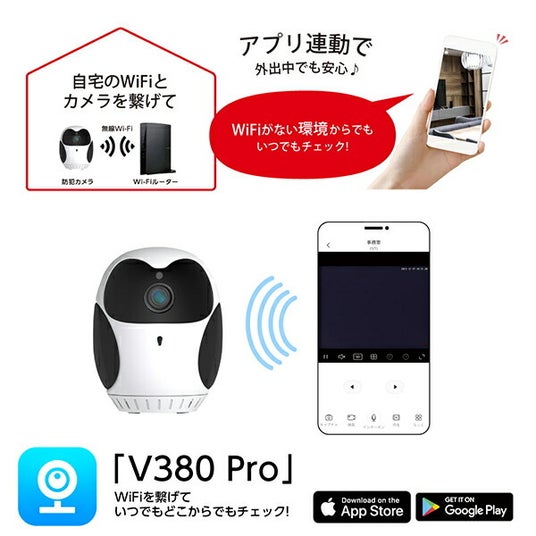 ・専用アプリ(V380PRO)で、いつでもどこでも遠隔確認OK!