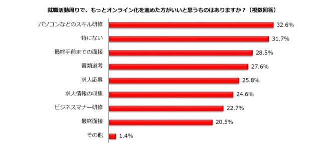 2.就活周りでオンライン化を進めた方がいい:「パソコンなどスキル研修」32.6%