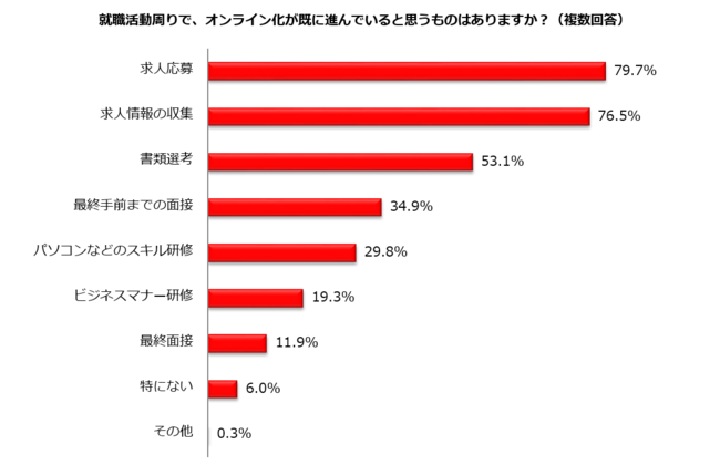 1.就活周りでオンライン化が進んでいる:「求人応募」79.7%