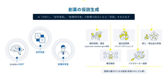 *2 DDAIF:AIと創薬に精通したFRONTEOの創薬エキスパートが、KIBITの自然言語処理技術と独自の解析手法を駆使し、標的分子・適応症探索やその裏付けとなる仮説を提供するAI創薬支援サービス
