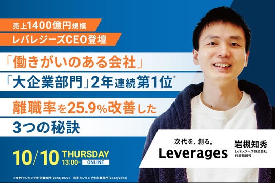 名称:【売上1,400億円規模レバレジーズCEO登壇】『働きがいのある会社』大企業部門2年連続1位の会社が離職率を25.9%改善した3つの秘訣